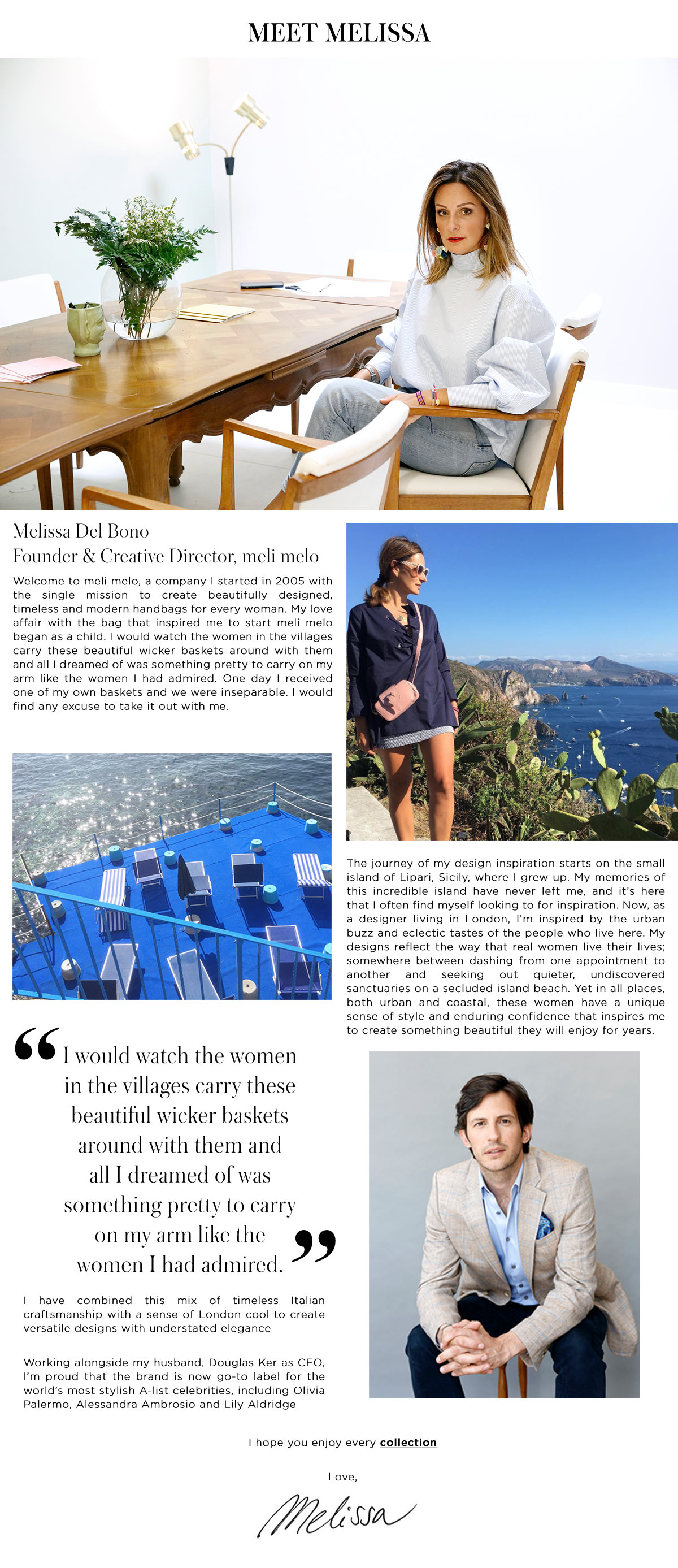 This was part of a series of landing pages telling the brand stories at meli melo. This page was About Melissa.