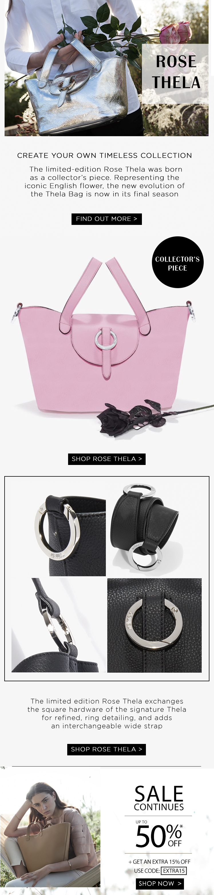This was a Newsletter for meli melo featuring the Rose Thela Collection and a secondary Sale message