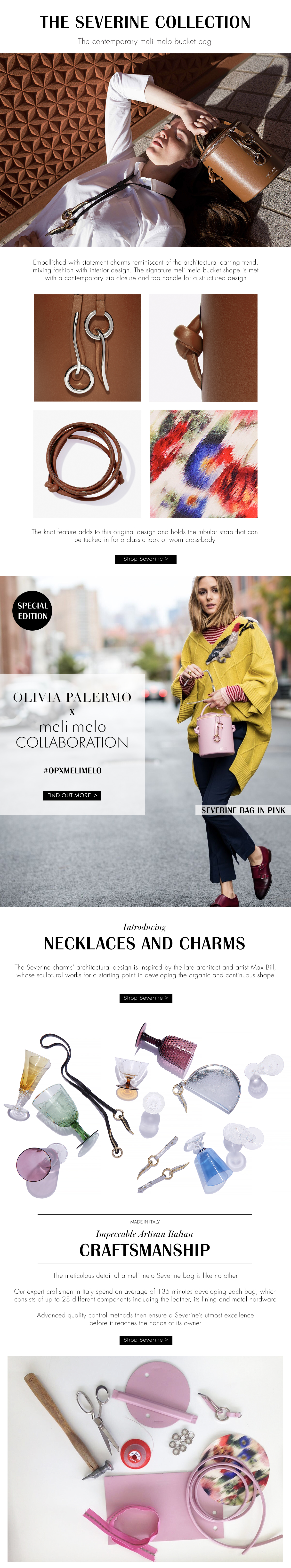 This was part of a series of landing pages for the new product collections for the meli melo SS18 Main Collection.
